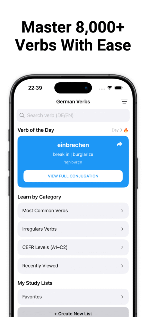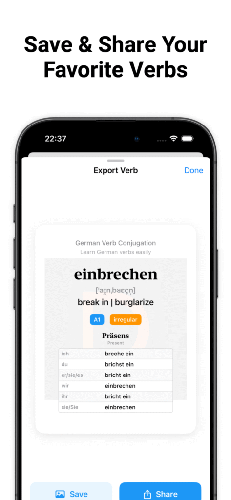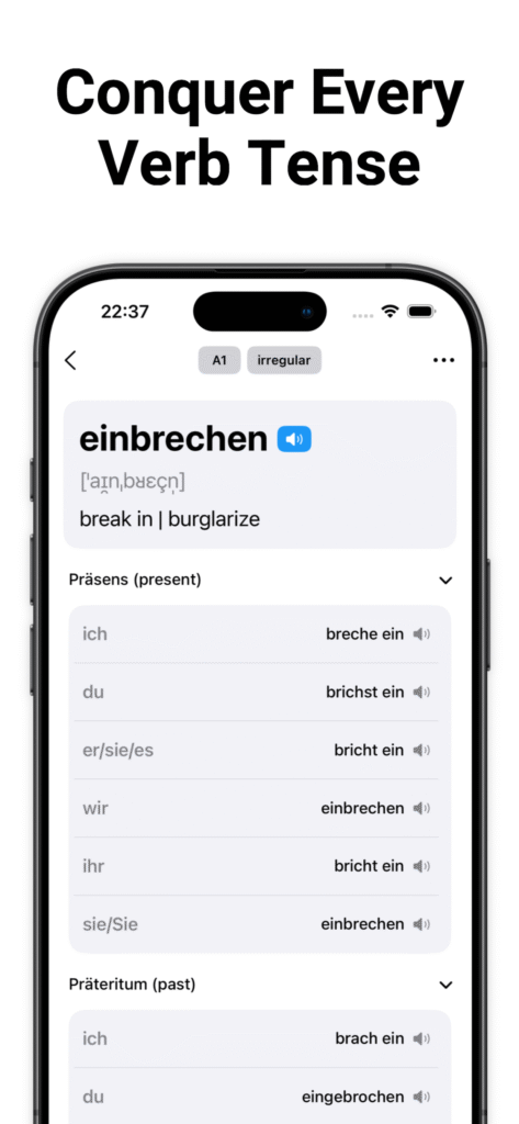 Boost your German skills with this offline app! Practice and master verb conjugations anytime, anywhere. Perfect for beginners and advanced learners alike, it makes learning German verbs fast, easy, and convenient – no internet required.